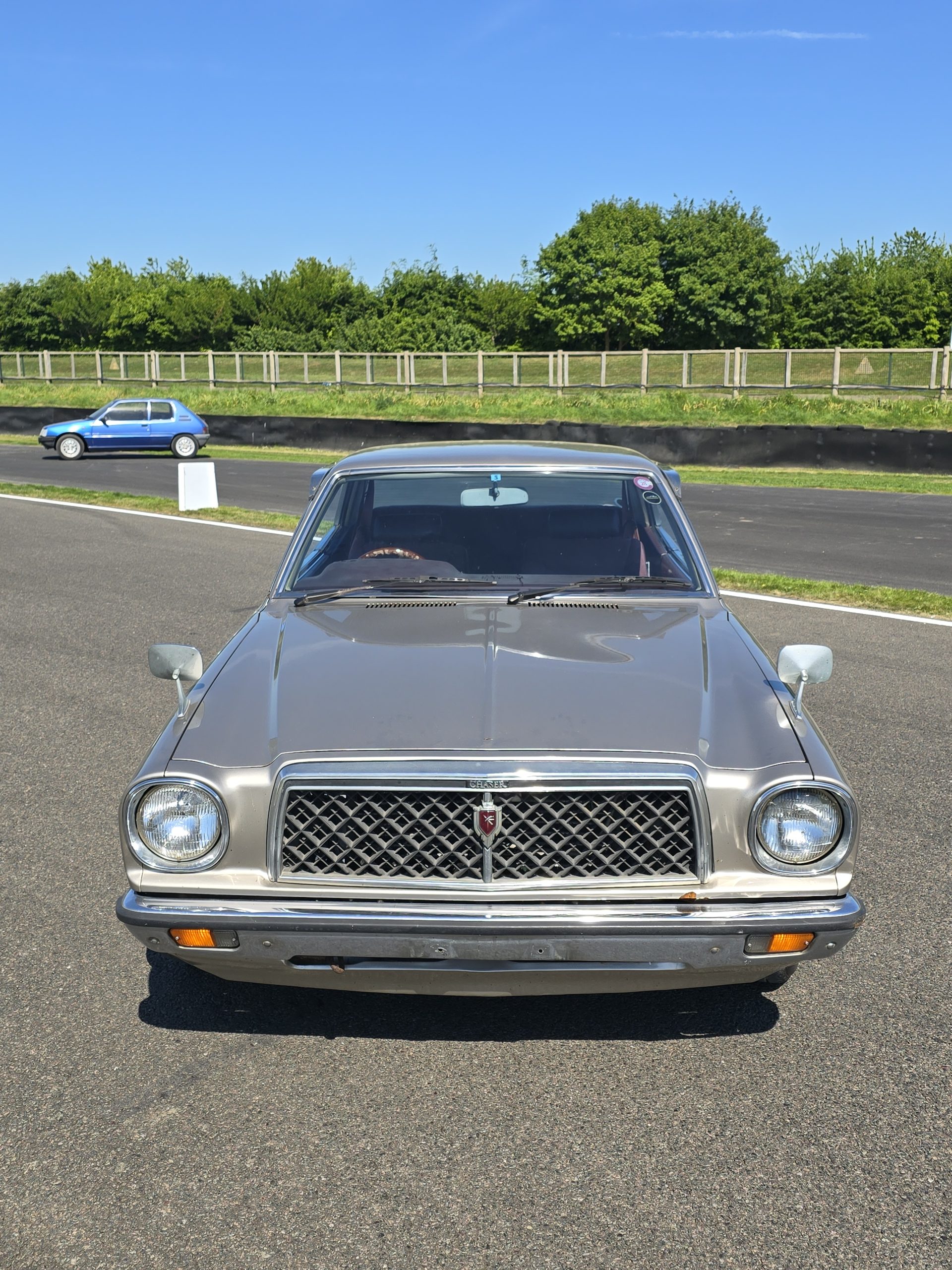 The Chaser was part of a family of cars, including the Mark II and Cresta, with the Chaser specifically designed as a sporty, pillarless hardtop. It was a competitor in the Japanese market to models like the Nissan Skyline and Mazda Cosmo.